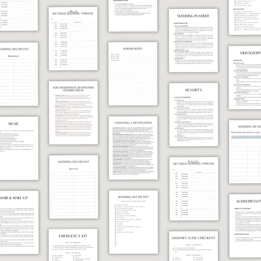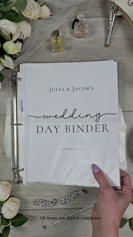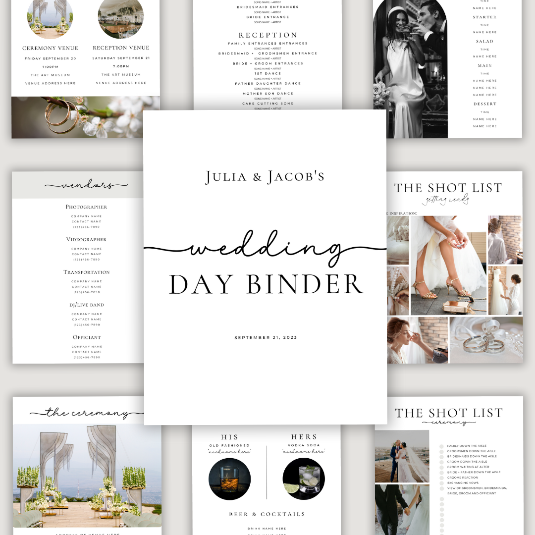 Pro Tip: Keep your wedding day organized and stress-free with our Wedding Day Binder. It includes pre-filled checklists, catering details, and schedules, ensuring you stay on top of all the important details for your big day.
