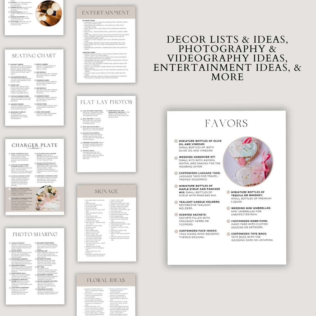 With our planner, you have access to detailed checklists, timelines, and vision boards that cover every aspect of your wedding decor. From vendor selection to the day-of schedule, you’ll have everything organized and ready.