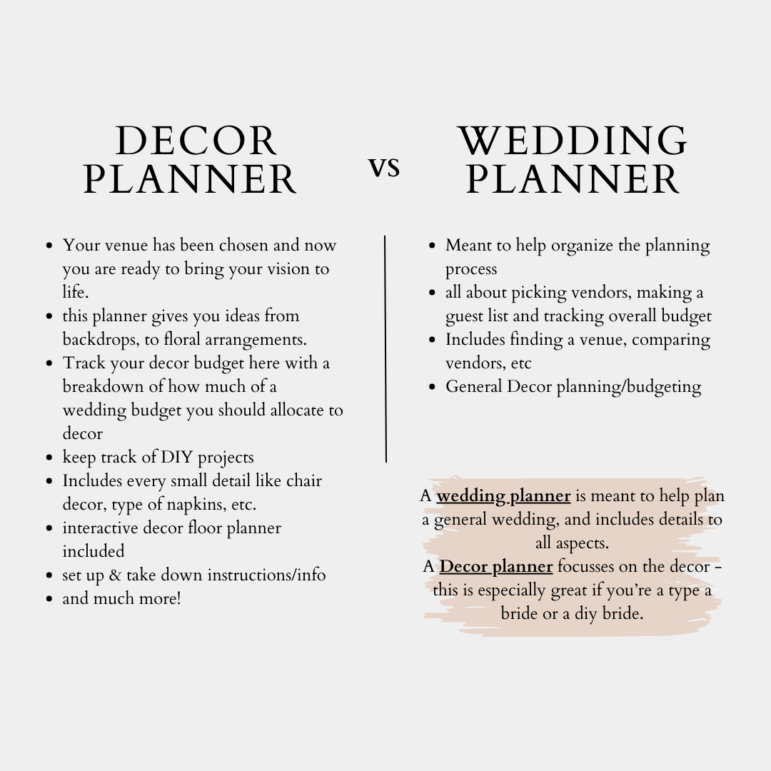 Comprehensive and User-Friendly: Whether you need ideas for floral arrangements, candle setups, or the perfect dance floor aesthetic, our planner covers every detail. Keep all your decor plans in one convenient place, and customize each section to suit your specific needs.